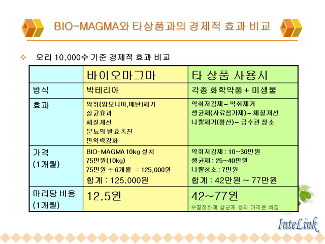 다음 자료는 오리농장의 BIO-MAGMA 적용사례입니다.