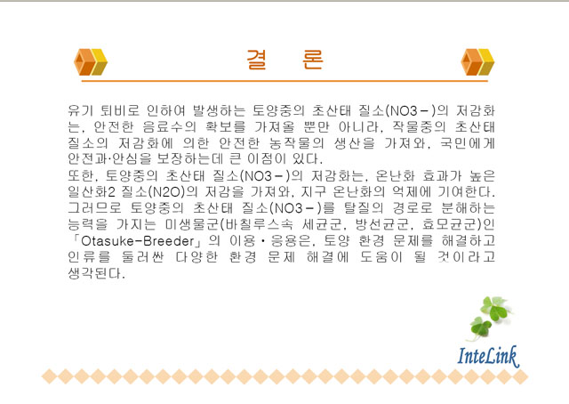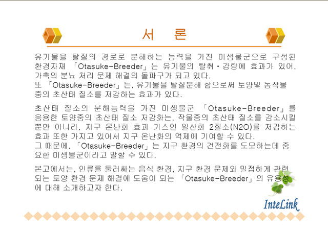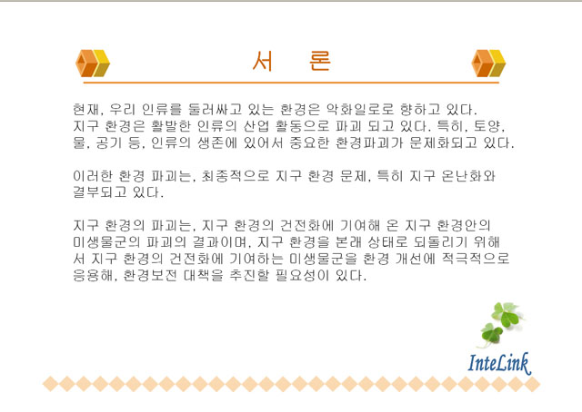 InteLink는 환경분야의 발전과 환경의 보전을 위해서 항상 최선을 다하겠습니다.