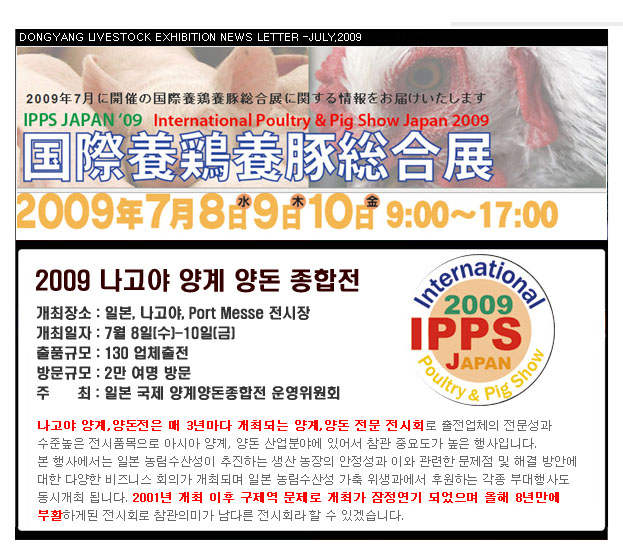 '2009 나고야 국제 양돈 양계 종합전'에 전시와 참관을 하였습니다.