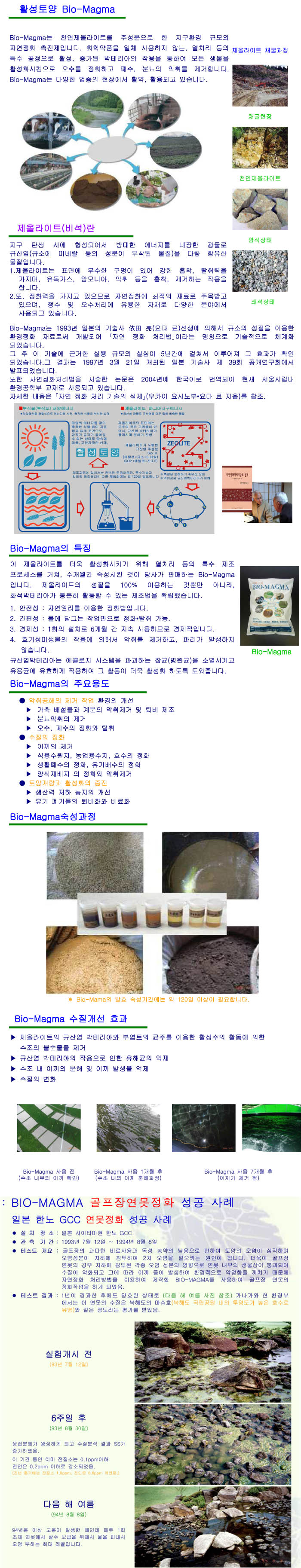BIO-MAGMA의 수질정화 및 연못 이끼제거 관련 자료입니다.
