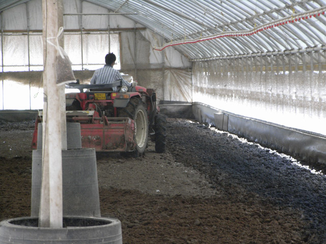 3. 소형 트렉터를 이용해서 농장 내부의 바닥을 로터리를 치고 3~5일간 균주가 활성화 될 때까지 기다린다.