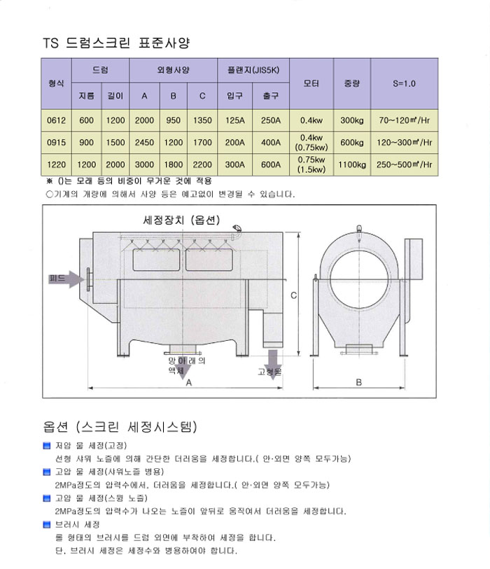 금번에 소개해 드리는 드럼스크린은 일본에서 가장 유명한 스크린 제조사인 TOYO Screen의 제품입니다.