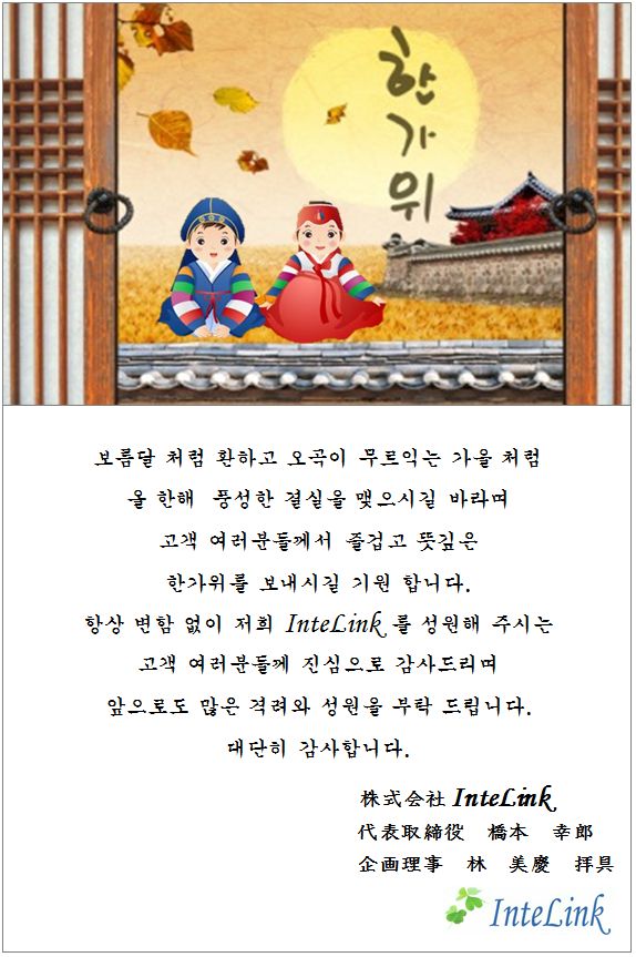 풍요롭고 뜻깊은 한가위 되시길 기원드립니다.