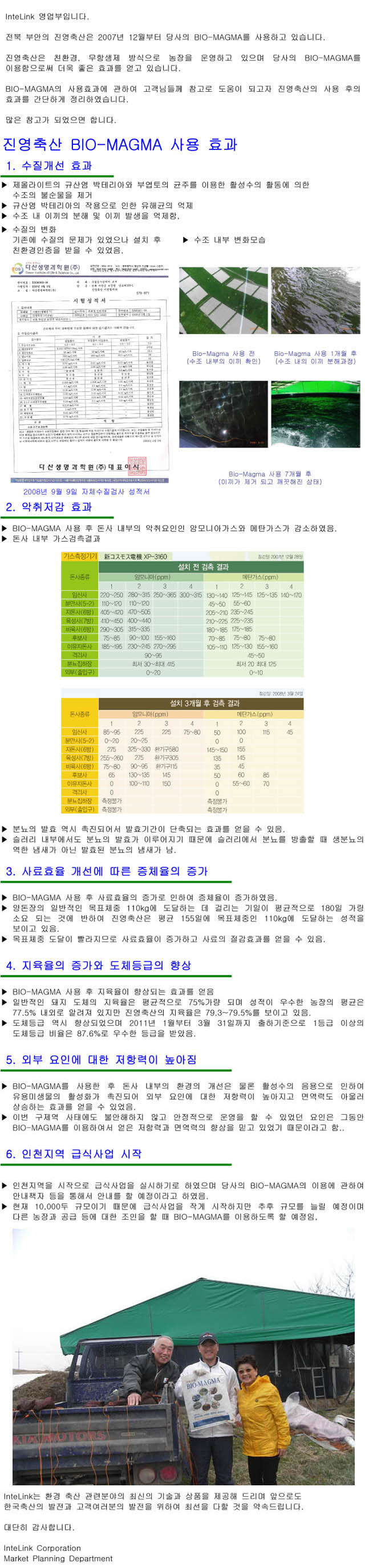 전북 부안 진영축산의 BIO-MAGMA 사용 후 효과 안내
