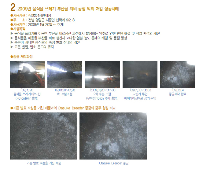 2009년 음식물 쓰레기 부산물 퇴비공장 악취 저감 성공사례